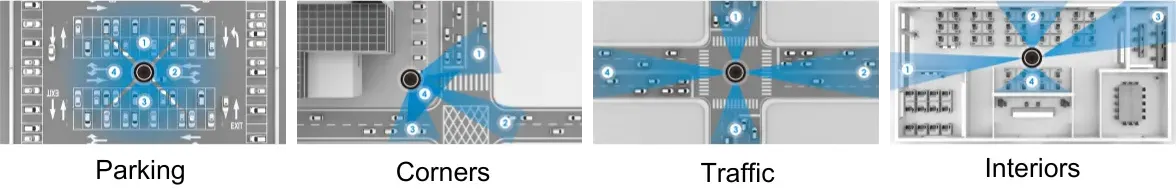 Gracias a su amplio campo de visión, la cámara de IA panorámica multidireccional ofrece una cobertura integral que elimina los puntos ciegos y reduce la necesidad de usar múltiples cámaras.
