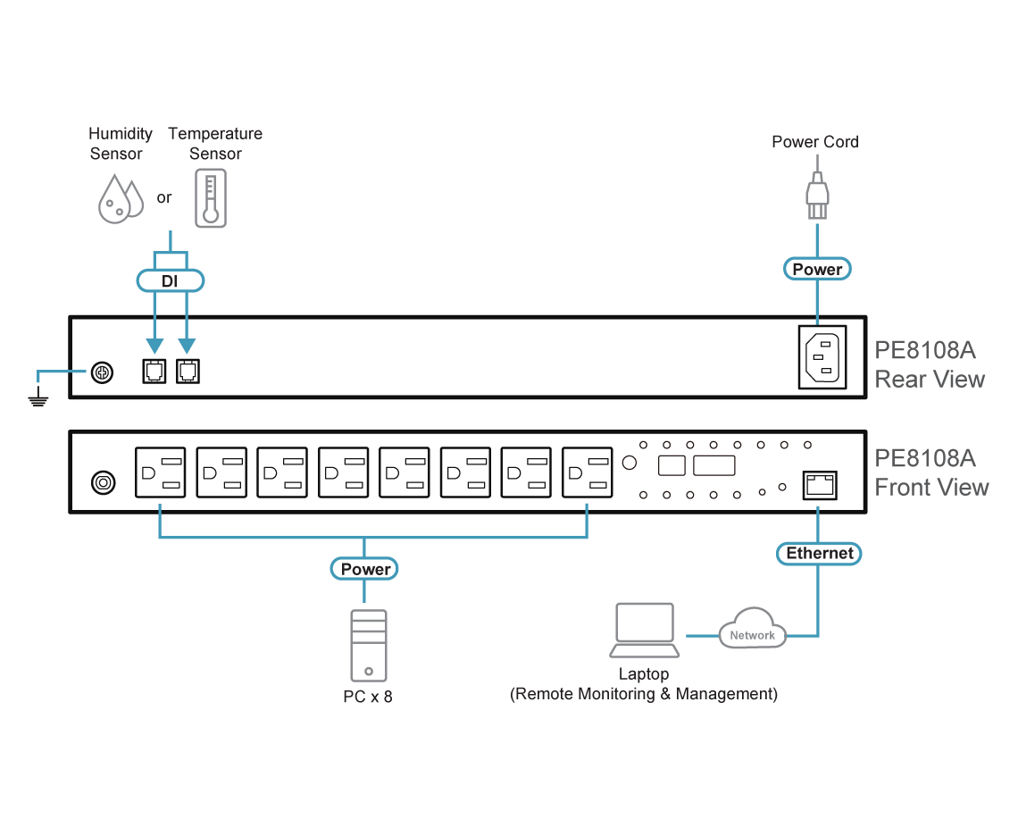 - kWH Corriente, voltaje y kWH mostrados en tiempo real en una interfaz de usuario basada en explorador para supervisión a nivel de salida de alimentación (PE8108 / PE8208)