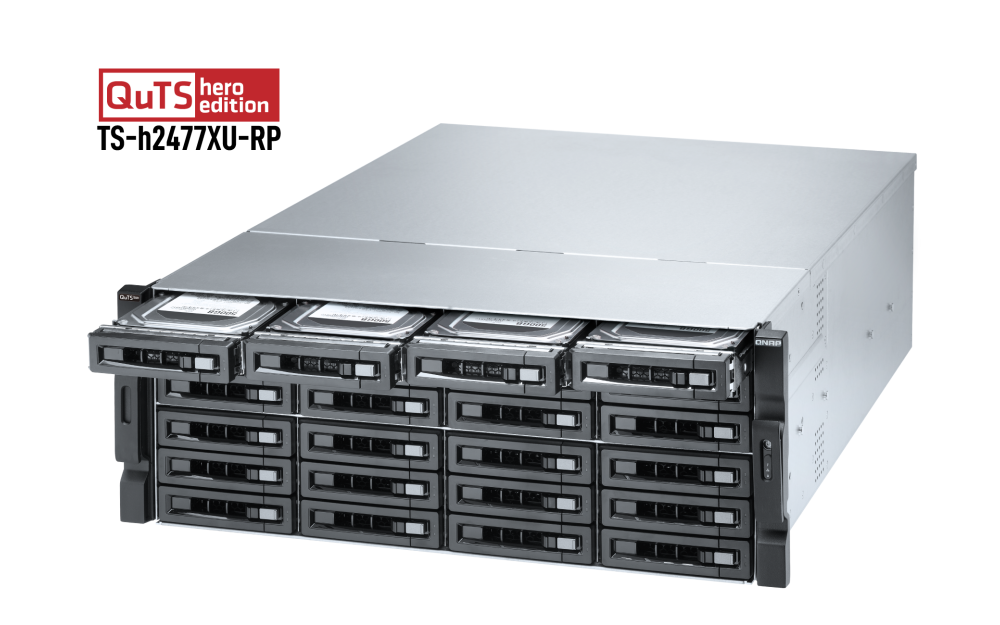 El NAS TS-h2477XU-RP con QuTS hero está equipado con un procesador AMD Ryzen™ 7 que ofrece un increíble rendimiento del sistema y de las máquinas virtuales con hasta 8 núcleos/16 hilos y una potencia de hasta 4,4 GHz. Con el sistema operativo QuTS hero basado en ZFS, TS-h2477XU-RP prioriza la integridad de los datos y es compatible con la deduplicación y compresión de datos en línea a nivel de bloque, instantáneas casi ilimitadas, SnapSync en tiempo real, protocolo SNMP y Servicios de dominio de Azure AD. Al usarse como un servidor de archivos de misión crítica, un servidor de virtualización, un editor de vídeo colaborativo o una eficaz solución de copia de seguridad y recuperación de archivos, el TS-h2477XU-RP ayuda a su empresa a conseguir el increíble rendimiento del acuerdo de nivel de servicio.