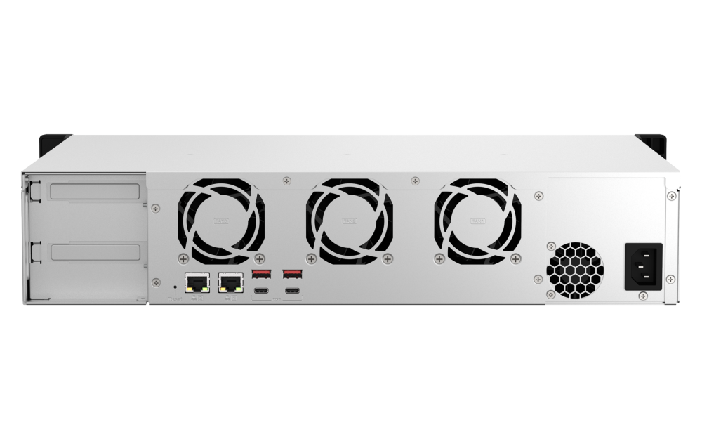 NAS 2,5GbE de montaje en rack y poca profundidad Equipado con un procesador AMD Ryzen™ de cuatro núcleos, compatible con 10/25GbE o capacidad de ampliación PCIe de caché SSD M.2 para aplicaciones virtuales