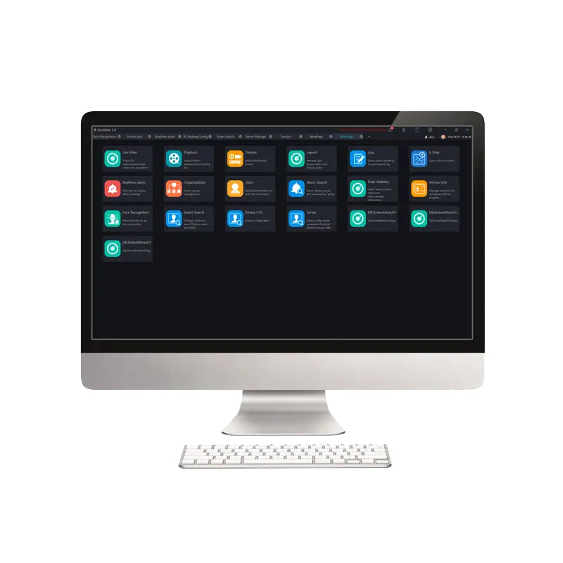 Con la gestión de usuarios, la gestión de dispositivos, la gestión de servidores, la gestión de alarmas, la gestión de mapas, la configuración de dispositivos, el vídeo en tiempo real, la reproducción de vídeo, la gestión de archivos de personal, las estadísticas de datos, el reconocimiento facial y otras funciones, puede satisfacer una variedad de soluciones de videovigilancia.