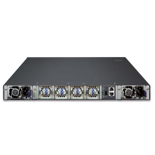 El XGS-6350-48X2Q4C está equipado con una unidad de fuente de alimentación extractiva de 100~240 V CA, por lo que es fácil reemplazar la energía para los usuarios. Además, el XGS-6350-48X2Q4C reserva otra ranura de alimentación de respaldo en el panel trasero donde se puede agregar una segunda fuente de alimentación CA o CC para convertirlo en una fuente de alimentación redundante. El sistema de alimentación redundante está diseñado específicamente para manejar las demandas de instalaciones de alta tecnología que requieren la máxima integridad de energía.