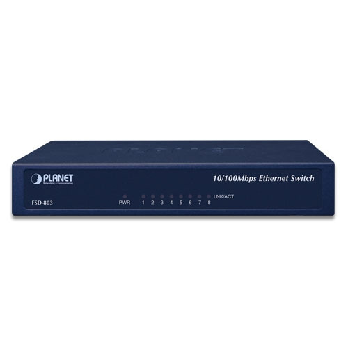 El switch Fast Ethernet FSD-803 de PLANET ofrece a los usuarios domésticos y empresariales un sistema integrado y rentable de redes para pequeñas oficinas y oficinas domésticas. Tiene un diseño de carcasa metálica de tamaño compacto y es perfecto para redes de entre 10 y 50 usuarios.